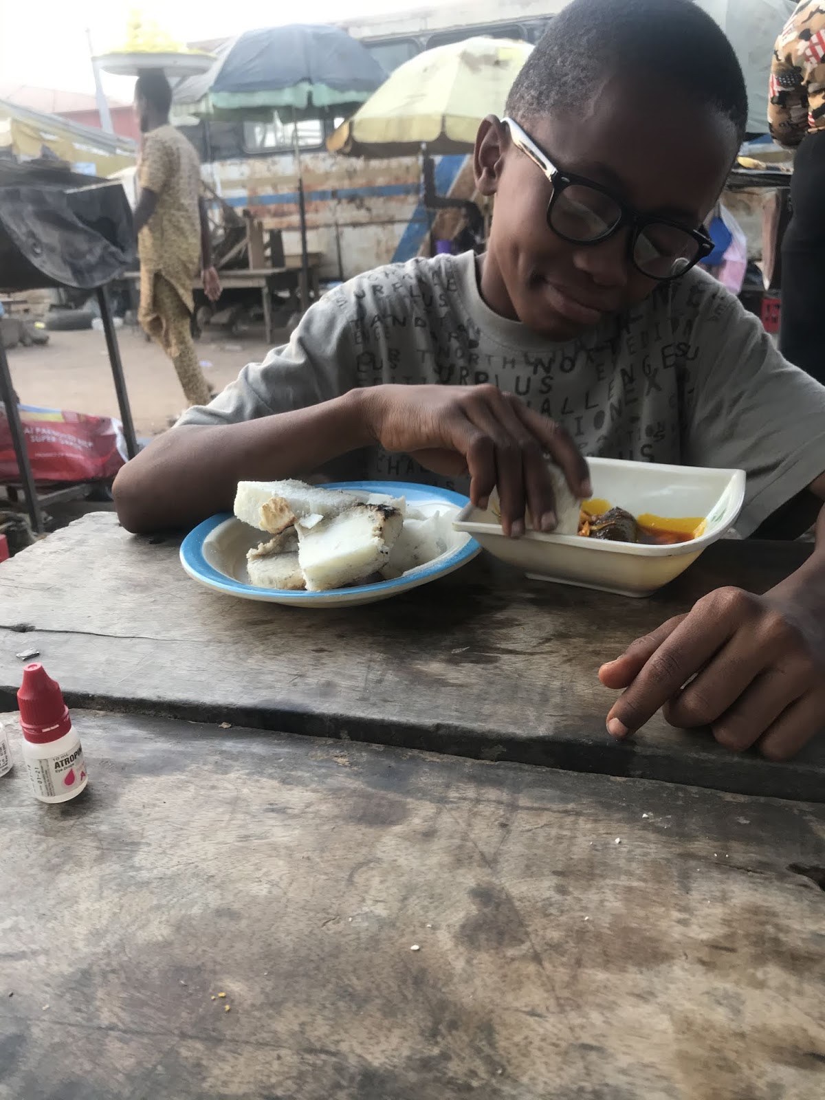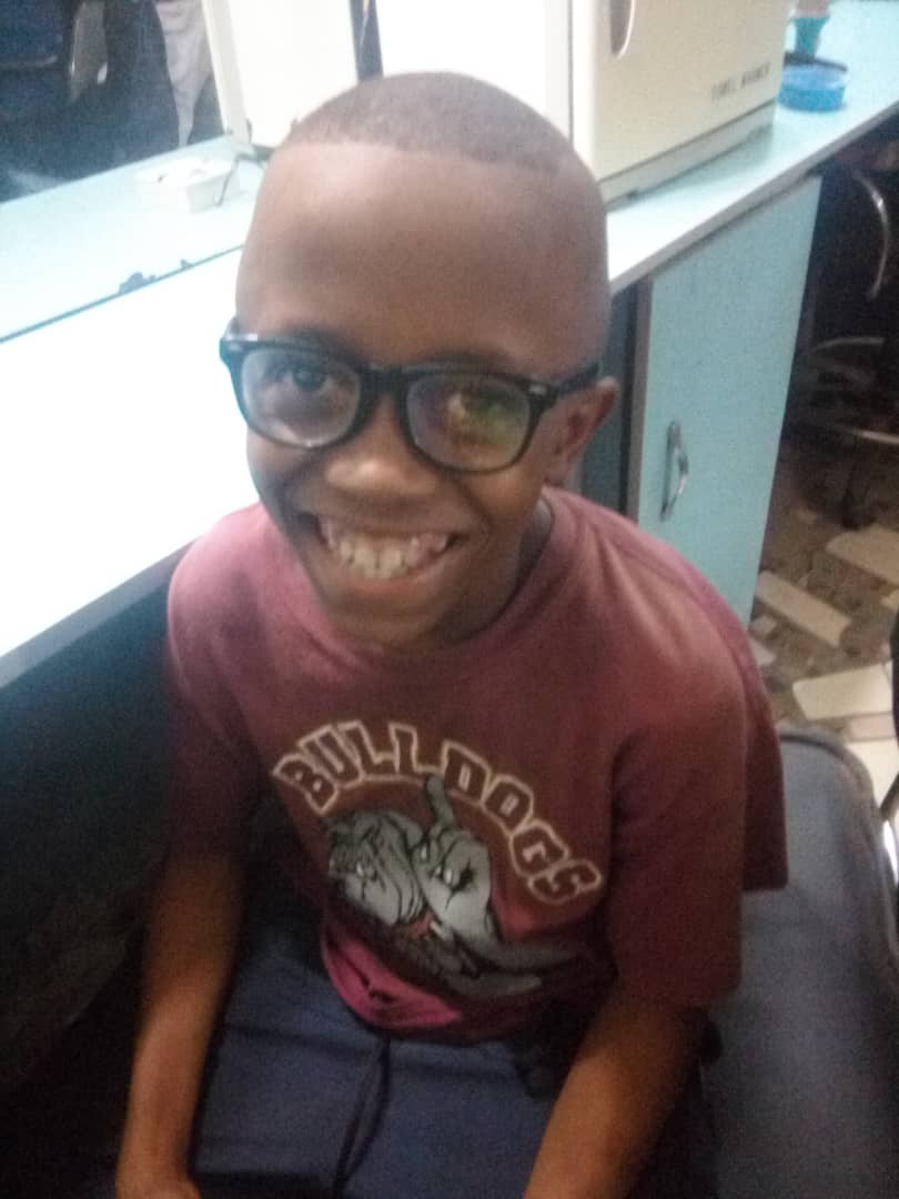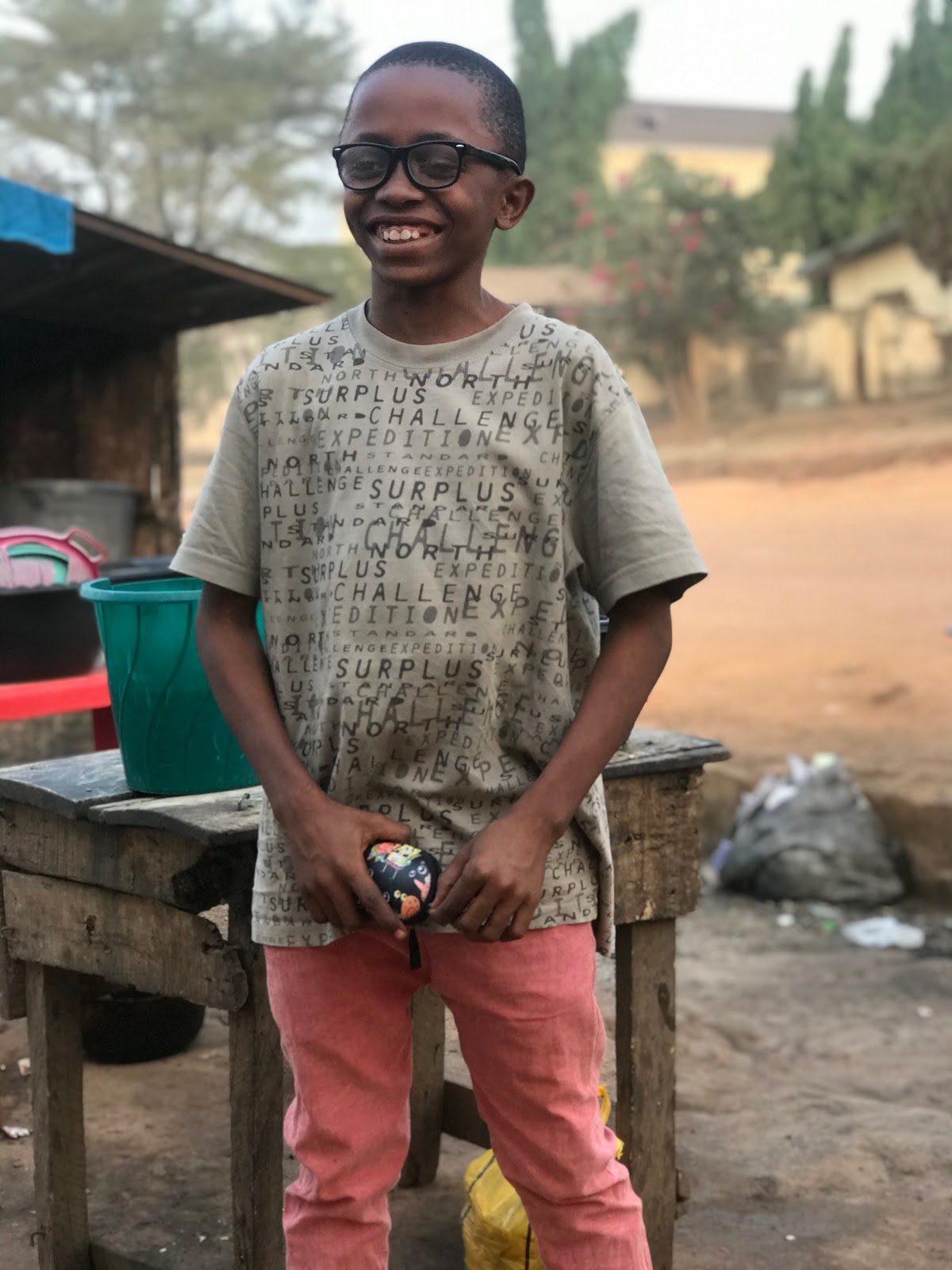 The elder sister who was assisting in taking him to the hospital on my behalf had dropped out of secondary school because of school fees issues, so part of the charity was used to pay her fees and return her to school. Now she’s a student again. And Chibuike as well, has also returned back to school with his protective glasses to aid his studies!
