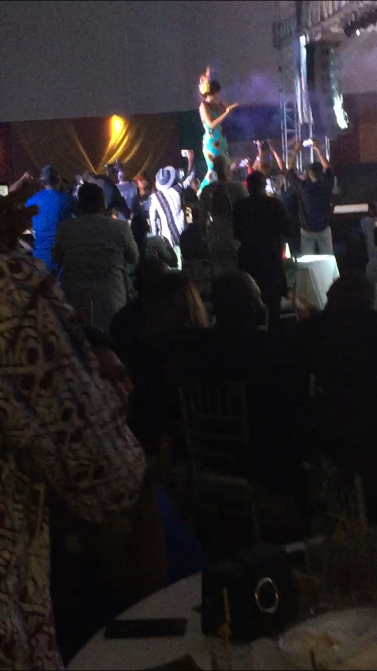 It took the help of some guys who jumped onto the stage to quench her fire and curb the shambolic situation, they put out all the fireworks. Thank God say e nor pas so.