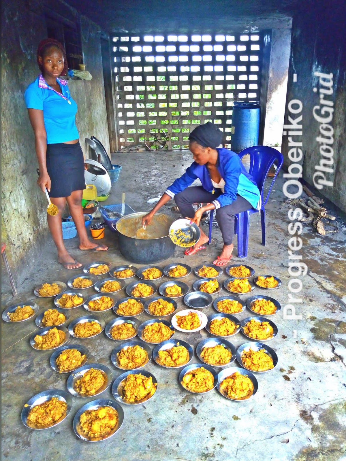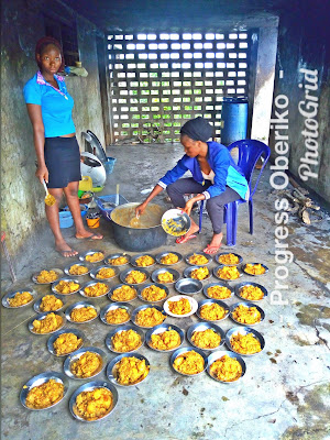 After we finish cooking, we serve in the number of plates that covers those who have subscribed for the meal and thereafter announce “Food Is Ready” for everyone to coman pick up theirs.