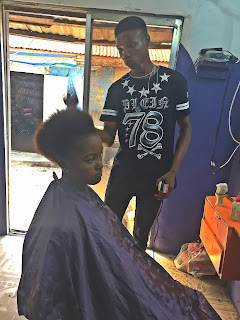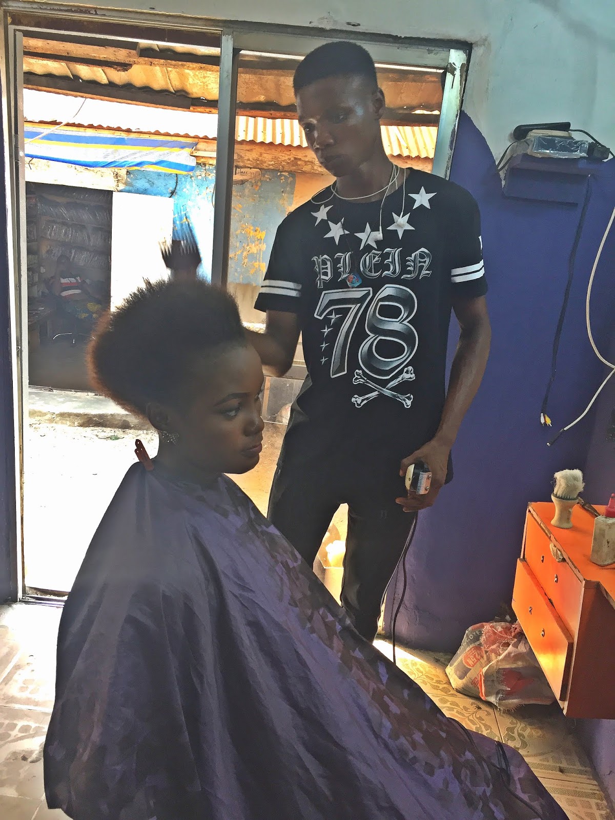 -Bros make I help u sweep am (As if to show respect). I took the broom from him while he went out to have a chat with the man outside. I quickly swept the place and packed our hair into a nylon which was in my pocket.